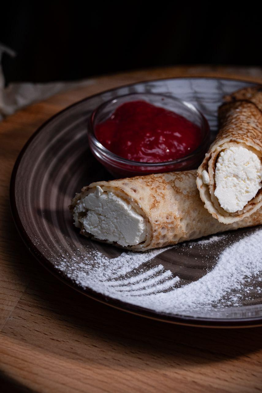 Тонкий блин с нежной творожной начинкой. Подходит для сладкого завтрака или перекуса.