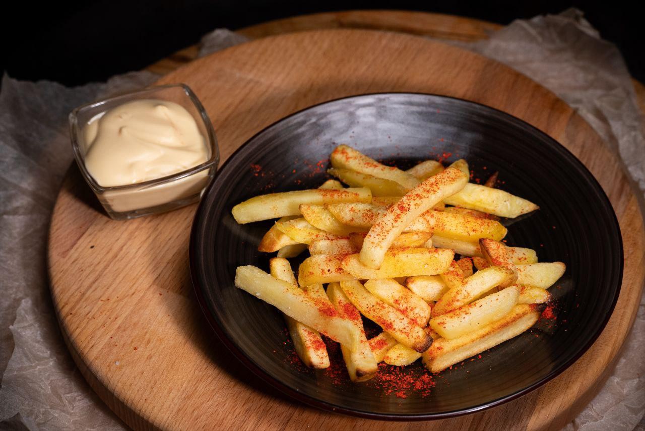 Классический картофель фри, приготовленный из отборного картофеля. Обжаривается до равномерного золотистого цвета, сохраняет мягкость внутри и аппетитную хрустящую корочку снаружи. Подходит как самостоятельное блюдо или как дополнение к бургеру и мясу.