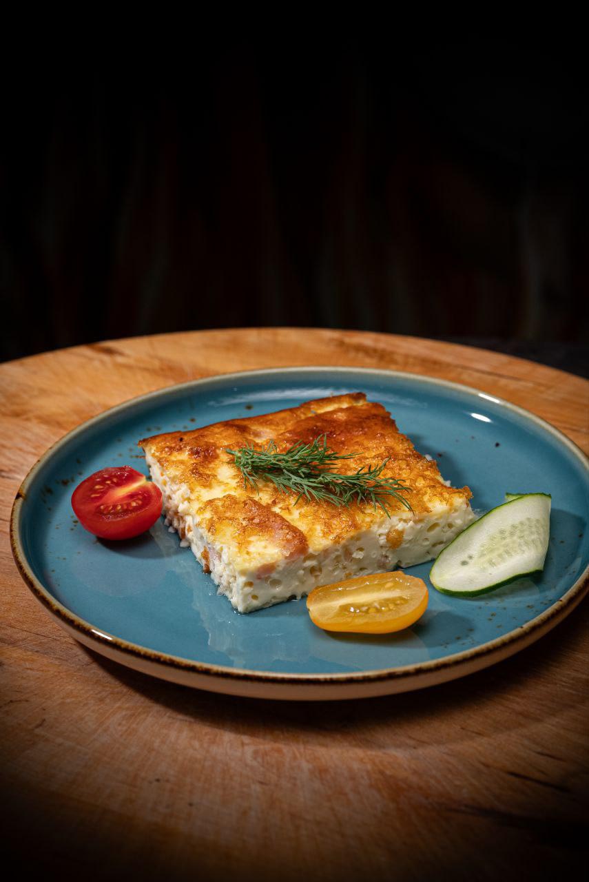 Взбитые яйца с кусочками ветчины, обжаренные до мягкости. Подходит для сытного и вкусного завтрака.