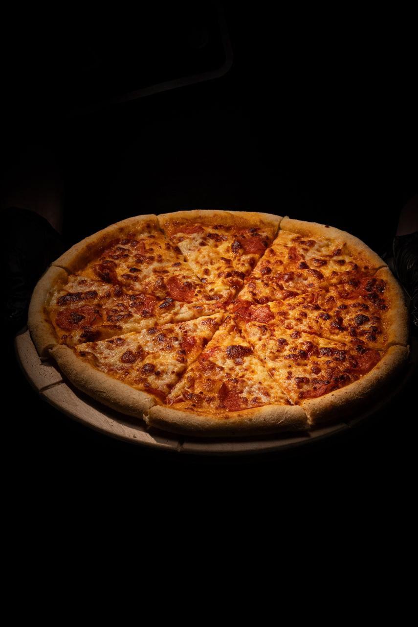 Пицца с томатным соусом, моцареллой и острой колбасой пепперони. Настоящая классика для любителей яркого вкуса.